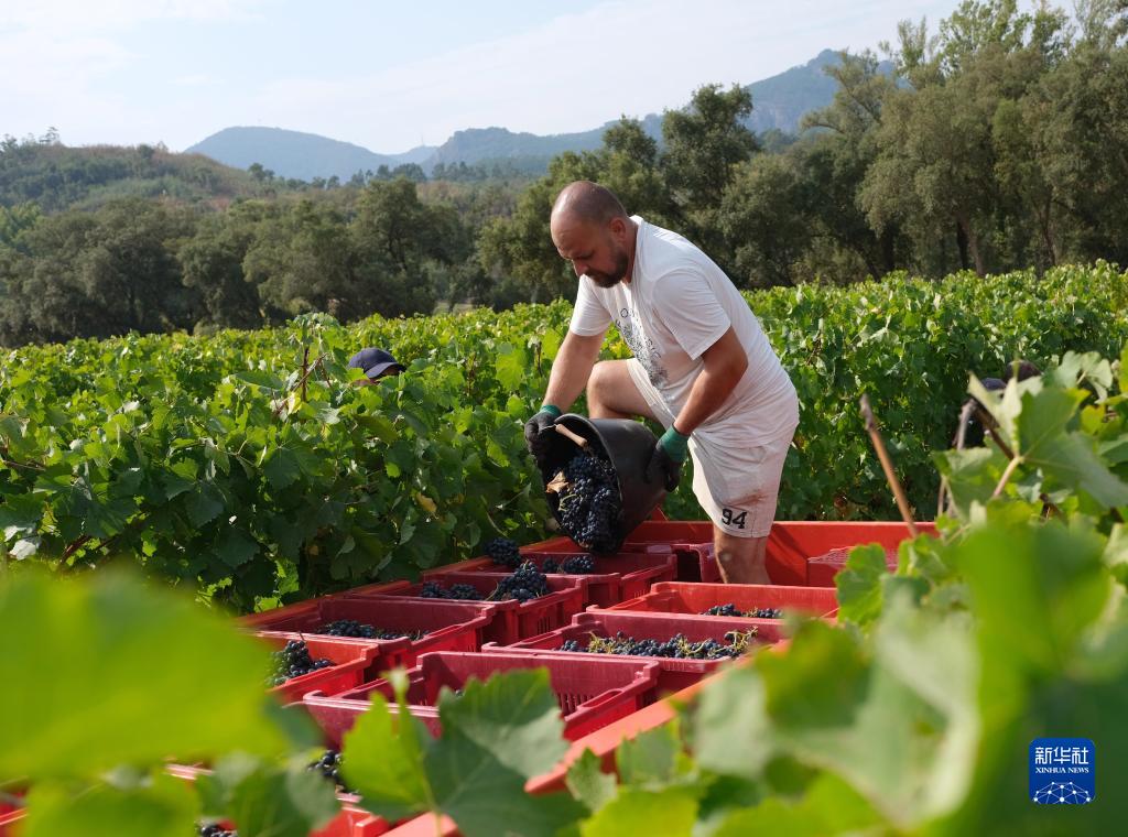 9月9日,在法國南部濱海阿爾卑斯省的芒德略拉納普勒,果農采摘用來(lái)釀酒的葡萄。