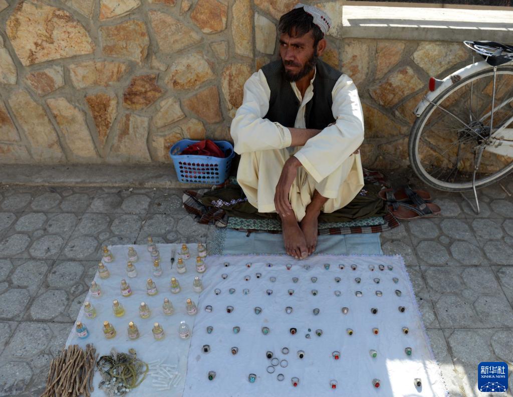 9月14日,一名商販在阿富汗坎大哈街頭等待顧客。