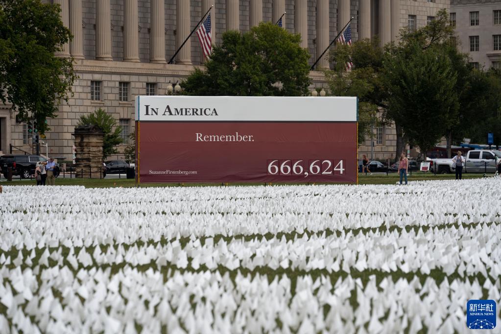 當日起至10月初,超過(guò)66萬(wàn)面白色旗幟擺放在華盛頓紀念碑附近悼念美國超過(guò)66萬(wàn)名新冠逝者。