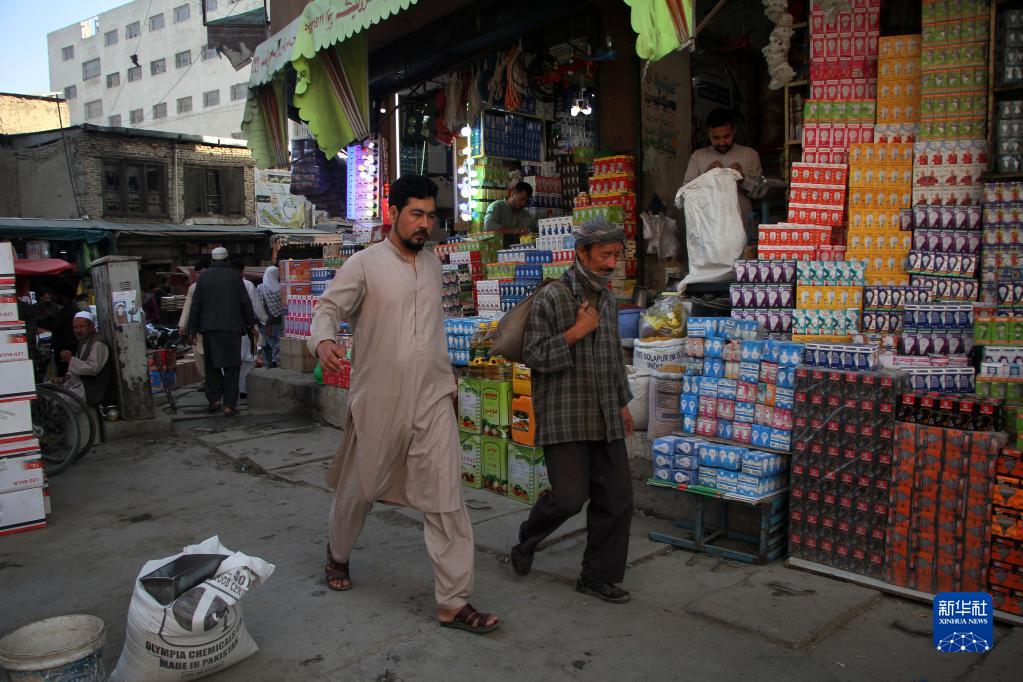 9月15日,阿富汗民眾走在喀布爾一家市場(chǎng)內。