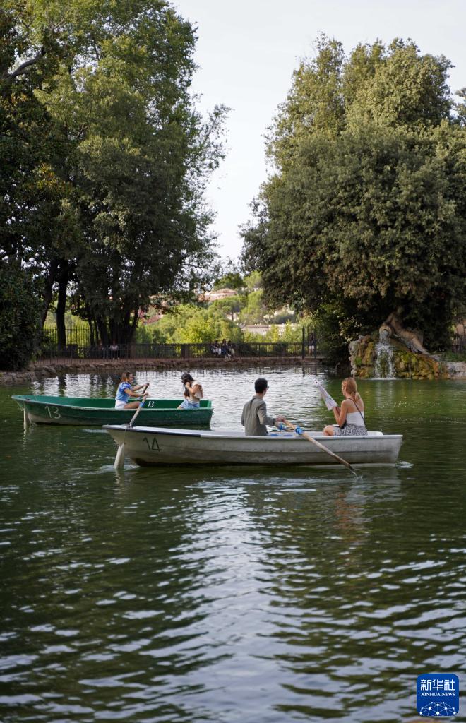 9月25日,人們在意大利羅馬的博爾蓋塞公園劃船。