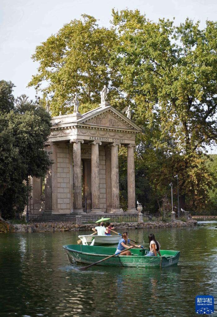 9月25日,人們在意大利羅馬的博爾蓋塞公園劃船。
