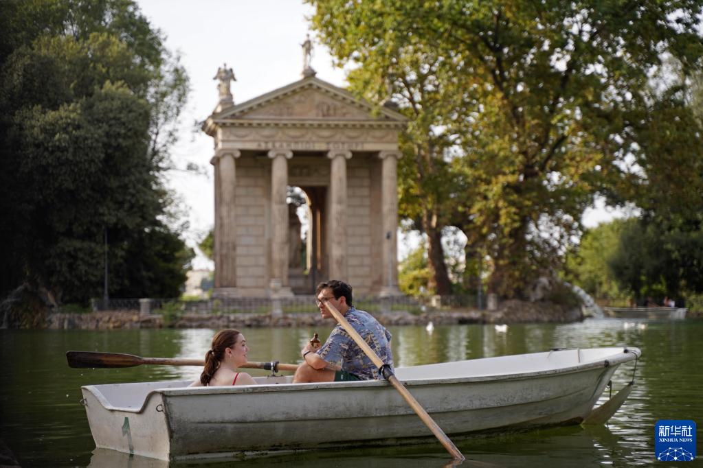 9月25日,人們在意大利羅馬的博爾蓋塞公園劃船。