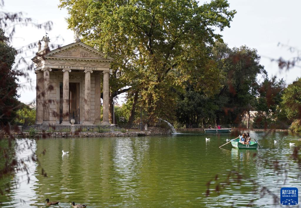 9月25日,人們在意大利羅馬的博爾蓋塞公園劃船。