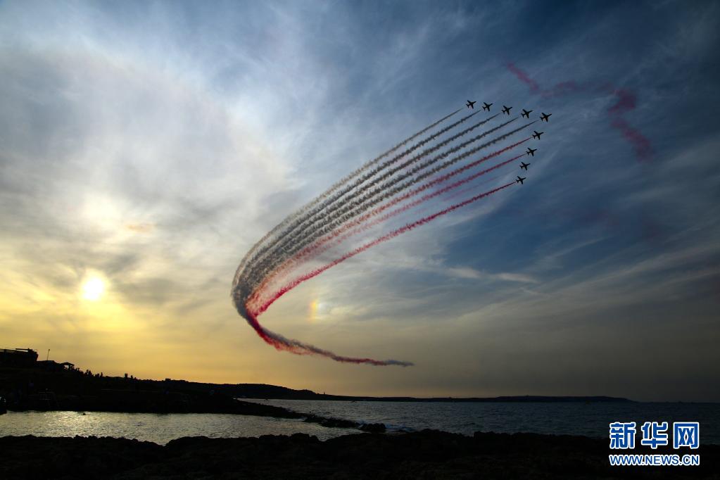 9月26日,在馬耳他卡瓦拉,飛機在國際航空展上進(jìn)行飛行表演。