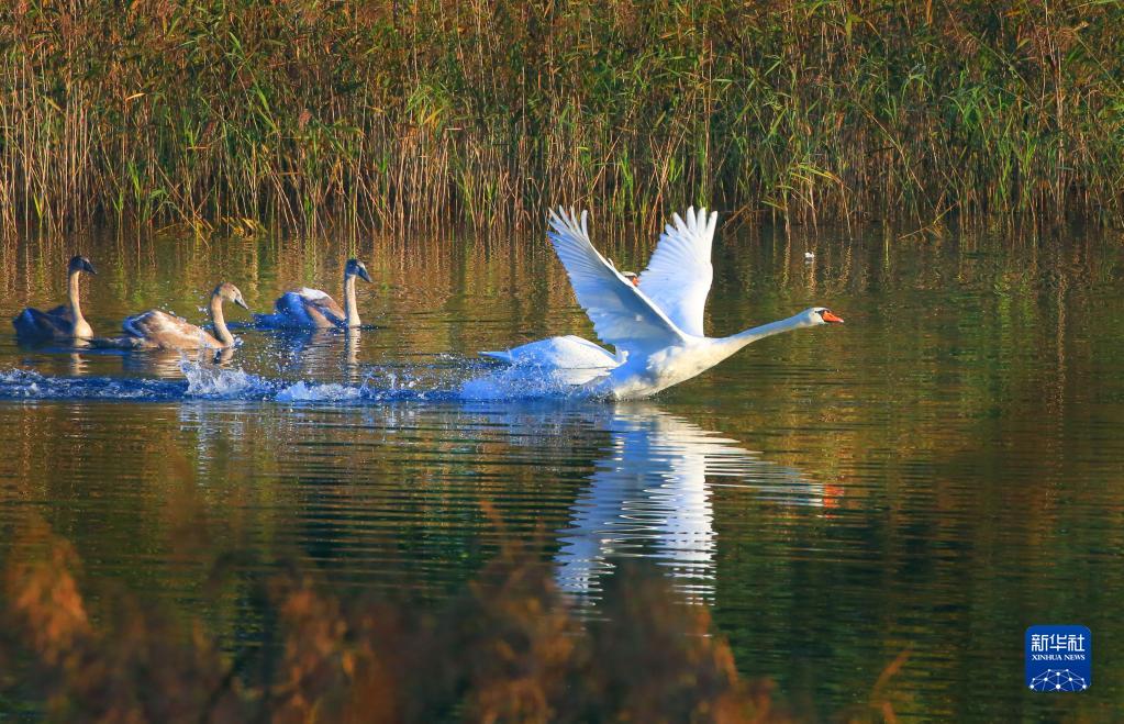 這是在白俄羅斯首都明斯克郊外拍攝的水禽(10月1日攝)。