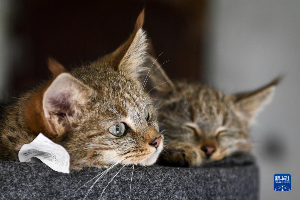 這是9月30日在西寧野生動(dòng)物園拍攝的兩只人工救助的荒漠貓幼崽。