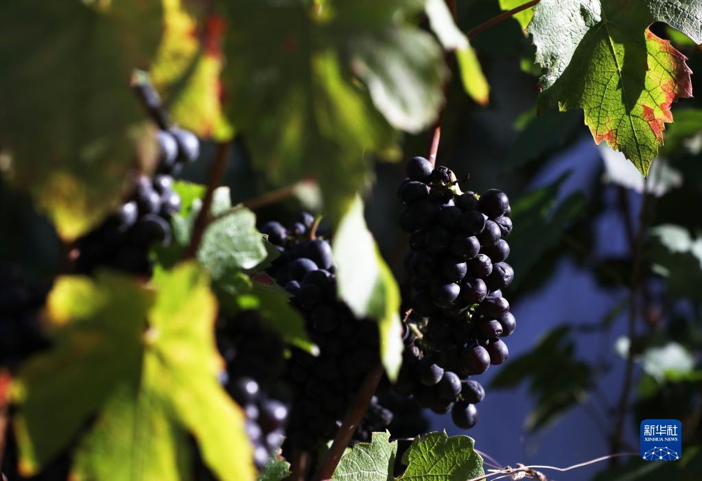 這是10月6日在法國巴黎蒙馬特高地葡萄園拍攝的待收的葡萄。