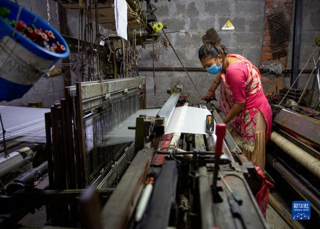 10月10日,一名工人在尼泊爾加德滿(mǎn)都的一處披肩工廠(chǎng)工作。