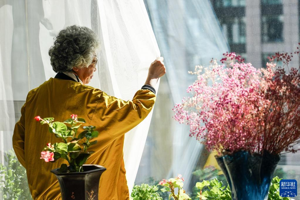10月11日,在北京的家中,李戰平出門(mén)前往養老公寓前將窗簾拉上。