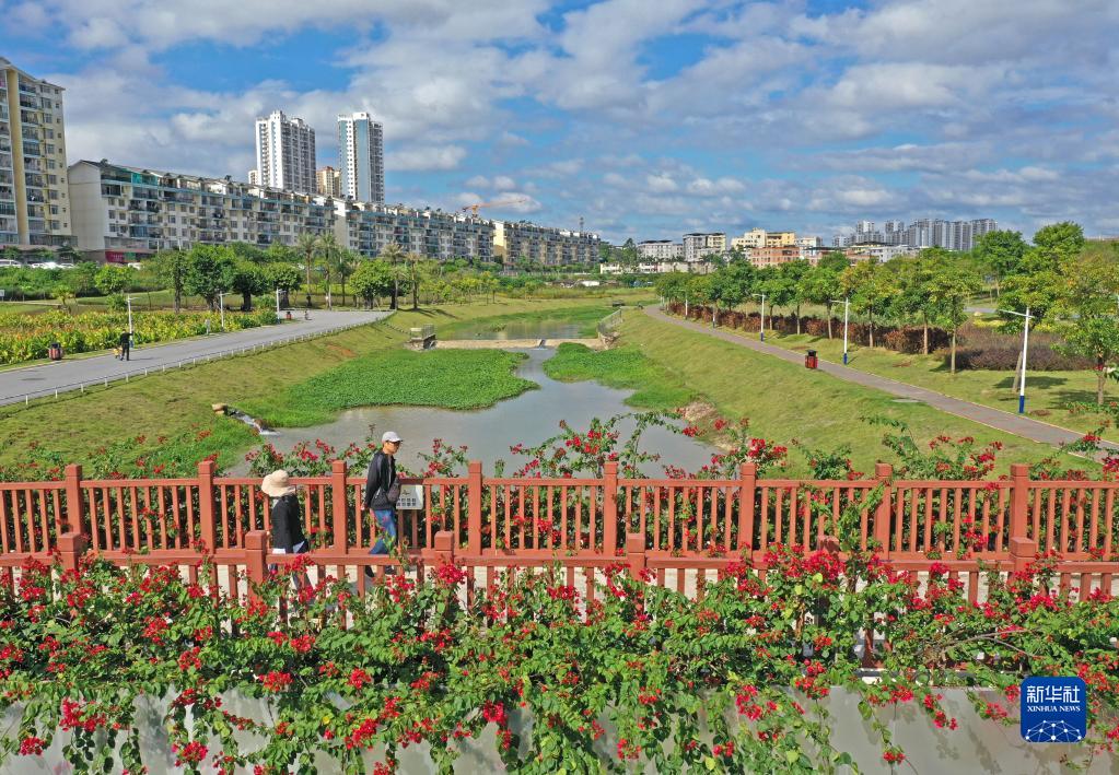 金秋時(shí)節,廣西南寧市沙江河濕地公園草木蔥蘢、水碧花紅,宛如一幅美麗畫(huà)卷。