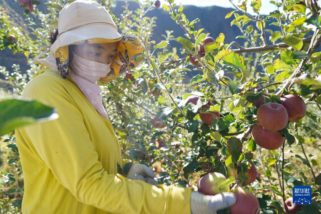 10月20日,在四川甘孜鄉城縣青德鎮萬(wàn)畝果園內,村民在采摘蘋(píng)果。