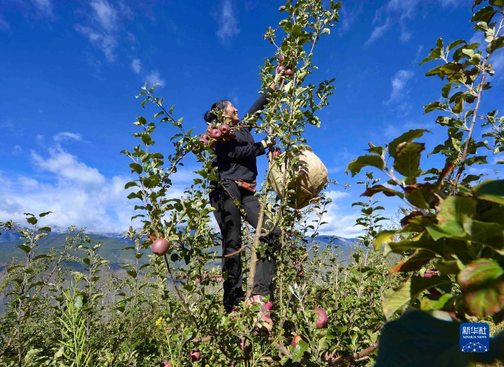 10月20日,在四川甘孜鄉城縣青德鎮萬(wàn)畝果園,村民在采摘蘋(píng)果。