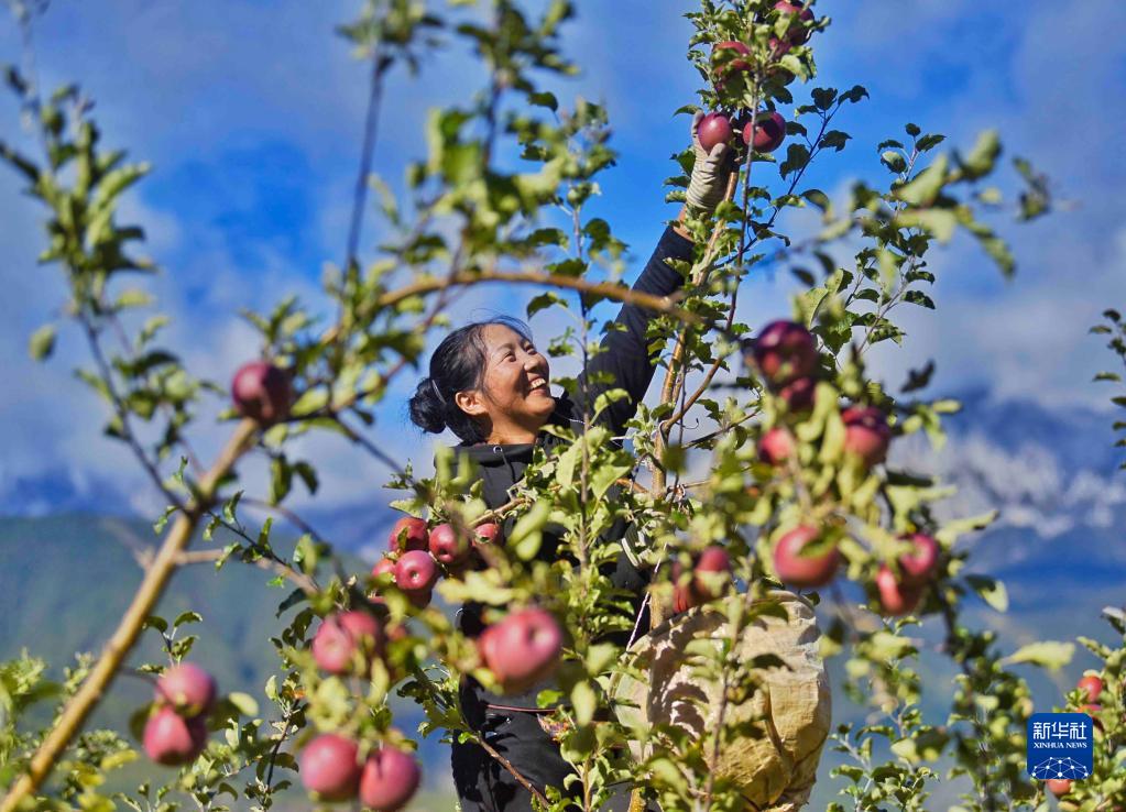 10月20日,村民在四川甘孜鄉城縣青德鎮萬(wàn)畝果園里采摘蘋(píng)果。