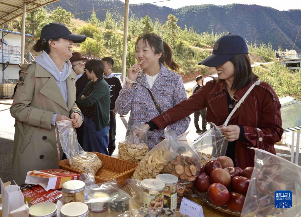 10月20日,在四川甘孜鄉城縣青德鎮萬(wàn)畝果園,來(lái)自浙江的客商在品嘗蘋(píng)果干。