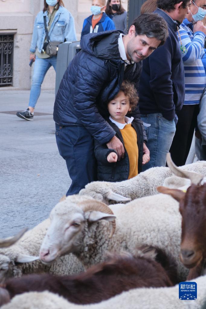 10月24日,人們觀(guān)看走過(guò)西班牙馬德里市中心的羊群。