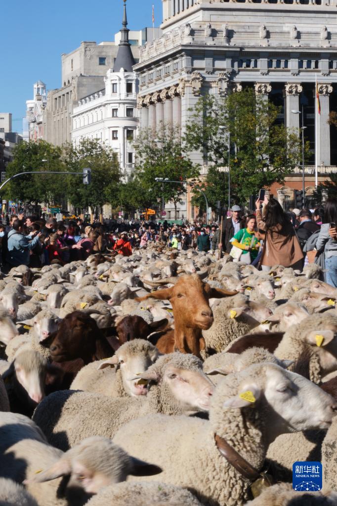 10月24日,羊群走過(guò)西班牙馬德里市中心。