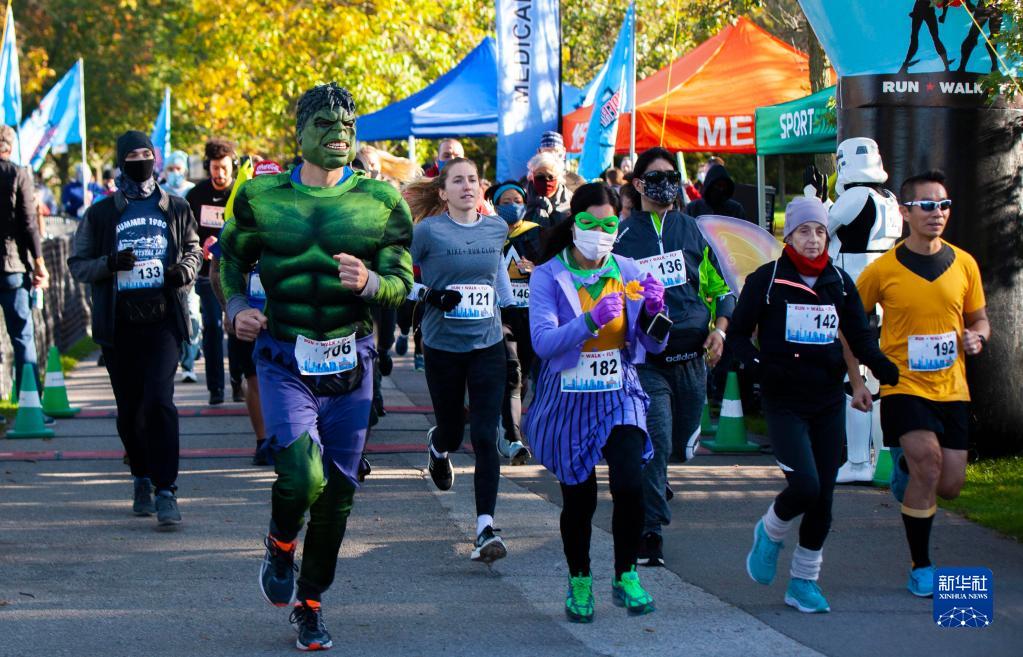 10月24日,穿著(zhù)動(dòng)漫服裝的人們在加拿大多倫多參加“變裝”5公里長(cháng)跑。