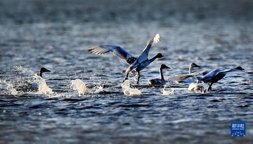 近日,陜西省榆林市榆陽(yáng)區河口水庫濕地迎來(lái)大批白天鵝、赤麻鴨等鳥(niǎo)類(lèi)。近年來(lái),位于毛烏素沙地南緣的榆陽(yáng)區采取退牧還濕、禁牧減畜等有效措施,加強生態(tài)環(huán)境保護。河口水庫濕地擁有大量淺灘、蘆葦,地勢平緩,水域寬廣,野生魚(yú)蝦資源豐富,已經(jīng)成為越冬候鳥(niǎo)途中覓食、停歇的理想之地。