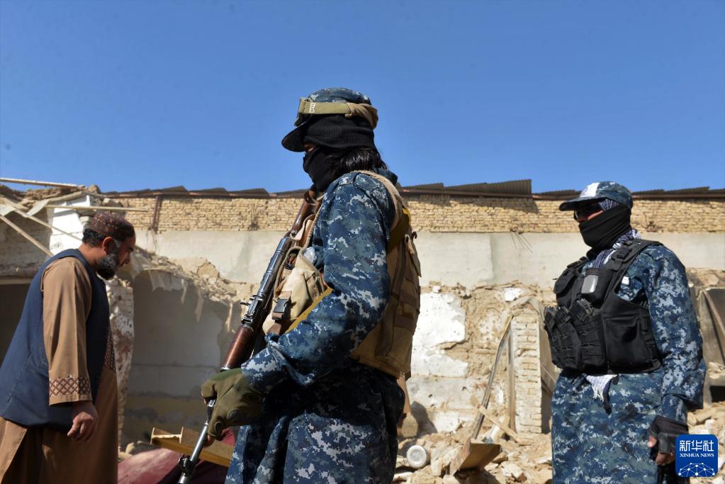 11月15日,阿富汗塔利班成員在坎大哈查看打擊“伊斯蘭國”武裝分子行動(dòng)后受損的房屋。