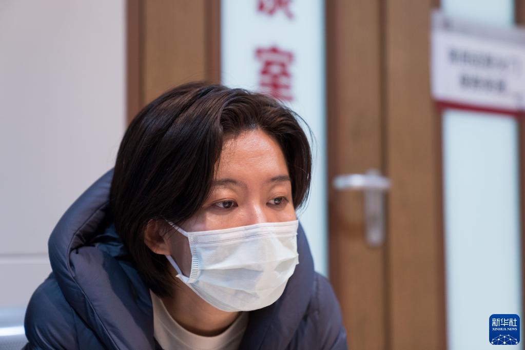 11月15日,在北京大學(xué)腫瘤醫院肝膽胰外一科手術(shù)室外,吳姝在等待媽媽手術(shù)結束。
