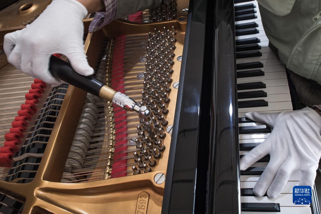 11月23日,工人在柏斯音樂(lè )集團宜昌鋼琴生產(chǎn)基地調試鋼琴。