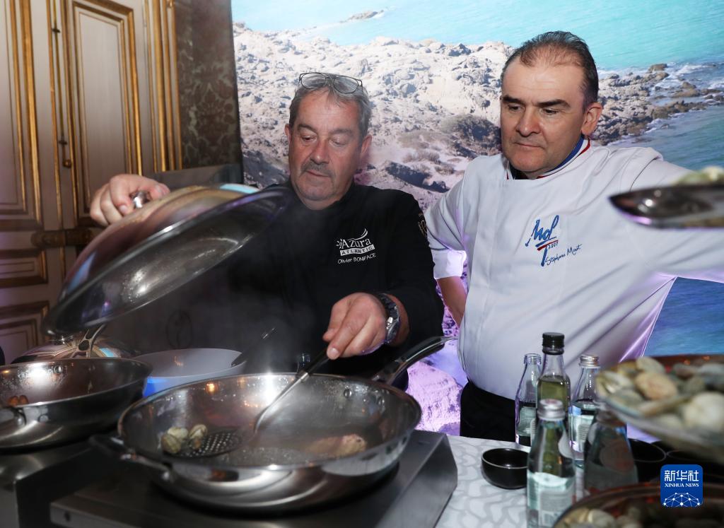 11月29日,在位于巴黎的法國外交部舉行的LA LISTE國際美食榜單揭曉活動(dòng)現場(chǎng),一家法國餐廳的大廚現場(chǎng)制作海鮮美食。