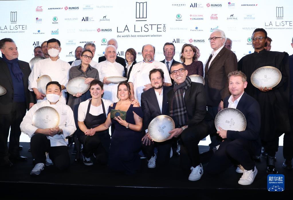 11月29日,在位于巴黎的法國外交部舉行的LA LISTE國際美食榜單揭曉活動(dòng)現場(chǎng),獲獎廚師合影留念。