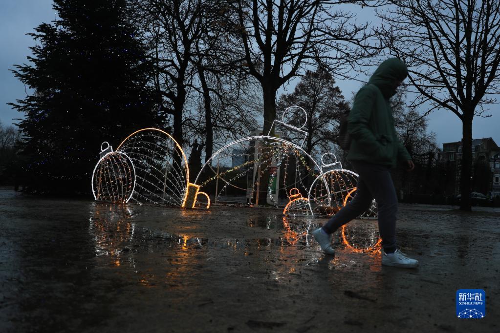 11月30日,一名行人經(jīng)過(guò)比利時(shí)布魯塞爾的一處圣誕燈飾。
