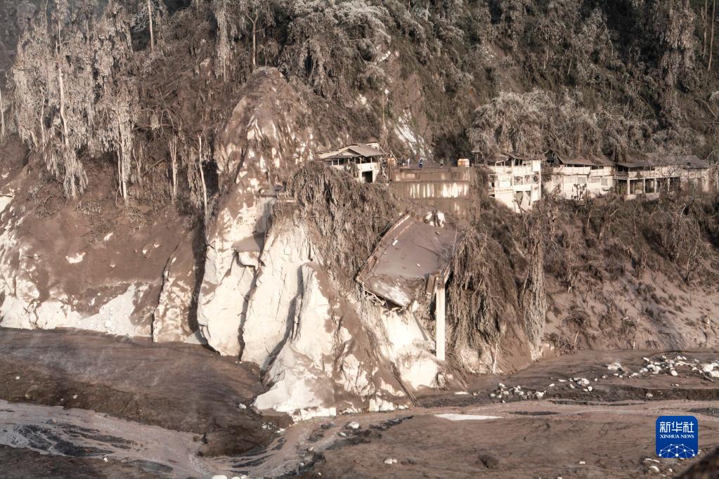 這是12月5日在印度尼西亞爪哇島東部盧馬姜拍攝的被火山噴發(fā)物覆蓋的受損橋梁。