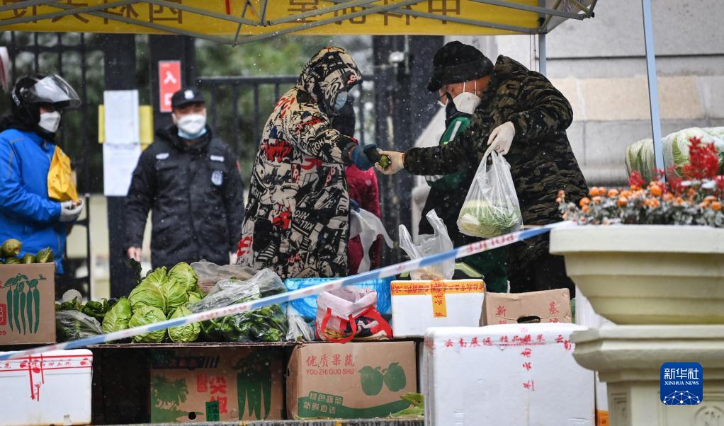 當日,西安市迎來(lái)雨雪天氣,全市小區(村)、單位實(shí)行封閉化管理,隨處可見(jiàn)堅守在各小區出入口的工作人員。雖然疫情讓這座城市按下暫停鍵,但是人們的生活仍在繼續:核酸檢測按時(shí)按規有序進(jìn)行,一線(xiàn)工作者盡心盡力為民服務(wù),所有市民按規居家抗疫,糧、油、肉、菜、蛋、奶等11類(lèi)生活必需品市場(chǎng)供應充足,公共區域環(huán)境消殺頻次增加,整座城市安靜有序。