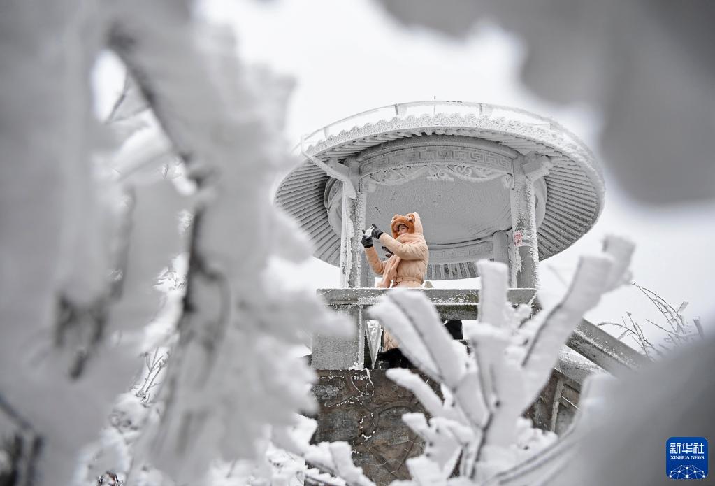 12月25日,游人在廬山風(fēng)景區拍攝雪景。
