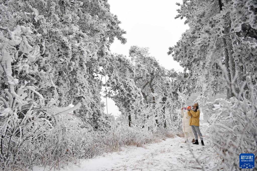 12月25日,游人在廬山風(fēng)景區拍攝雪景。