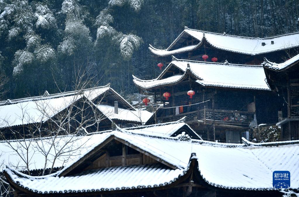 這是12月28日拍攝的湖北省恩施土家族苗族自治州彭家寨古吊腳樓群。