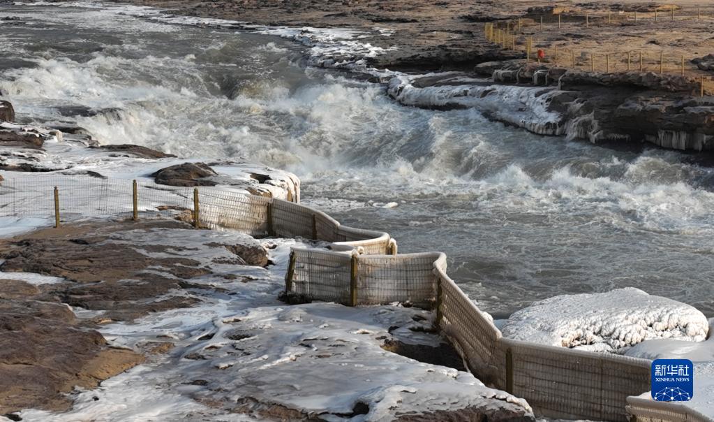 近日,隨著(zhù)氣溫逐漸降低,黃河晉陜峽谷流凌密度持續增大,大量流凌堆積,壺口段流凌封河的速度明顯加快,壺口瀑布往日30余米高的落差降低至2米左右。