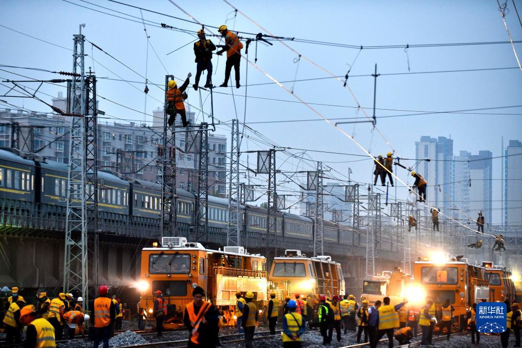 2021年4月12日,在膠濟鐵路黃臺站,中鐵十局千余名工作人員經(jīng)過(guò)6個(gè)小時(shí)的封鎖要點(diǎn)施工,圓滿(mǎn)完成膠濟鐵路至濟青高鐵聯(lián)絡(luò )線(xiàn)黃臺站改施工作業(yè)。