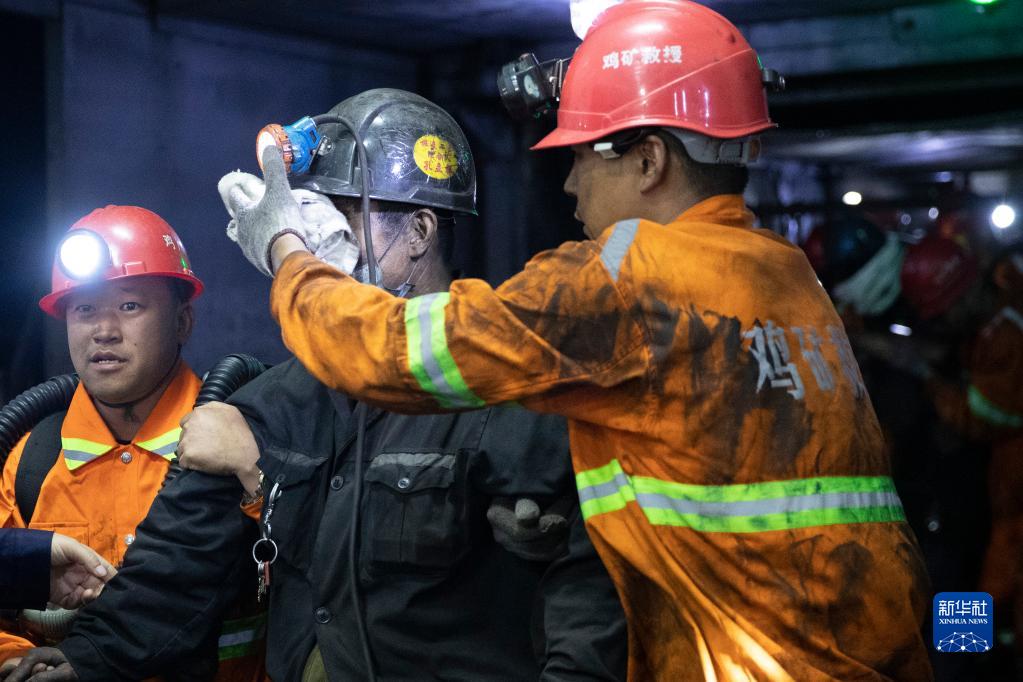 2021年6月6日,在黑龍江龍煤礦業(yè)集團雞西礦業(yè)公司滴道盛和煤礦立井事故現場(chǎng),被困礦工獲救升井。6月5日12時(shí)07分,該礦發(fā)生煤與瓦斯突出事故,事故發(fā)生時(shí)有8人在工作面作業(yè)。6月6日20時(shí)許,8名被困礦工全部升井。