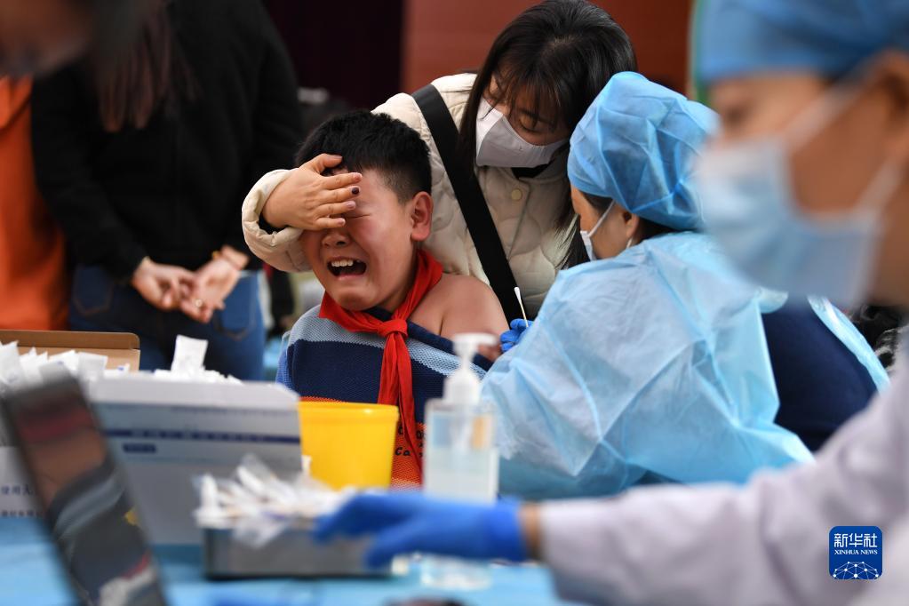 2021年11月12日,醫務(wù)人員在合肥市翡翠學(xué)校為小朋友接種新冠疫苗。