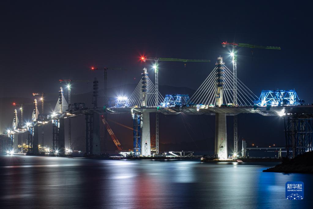 這是2021年6月22日在克羅地亞南部的科馬爾納村附近拍攝的佩列沙茨大橋施工現場(chǎng)。由中國企業(yè)承建的克羅地亞佩列沙茨跨海大橋2021年7月28日成功合龍。