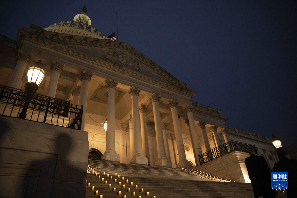 1月6日,美國首都華盛頓國會(huì )大廈降半旗、擺放蠟燭,紀念國會(huì )山騷亂事件一周年。