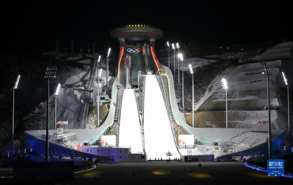 這是工作人員在張家口賽區國家跳臺滑雪中心工作(2021年12月31日攝)。