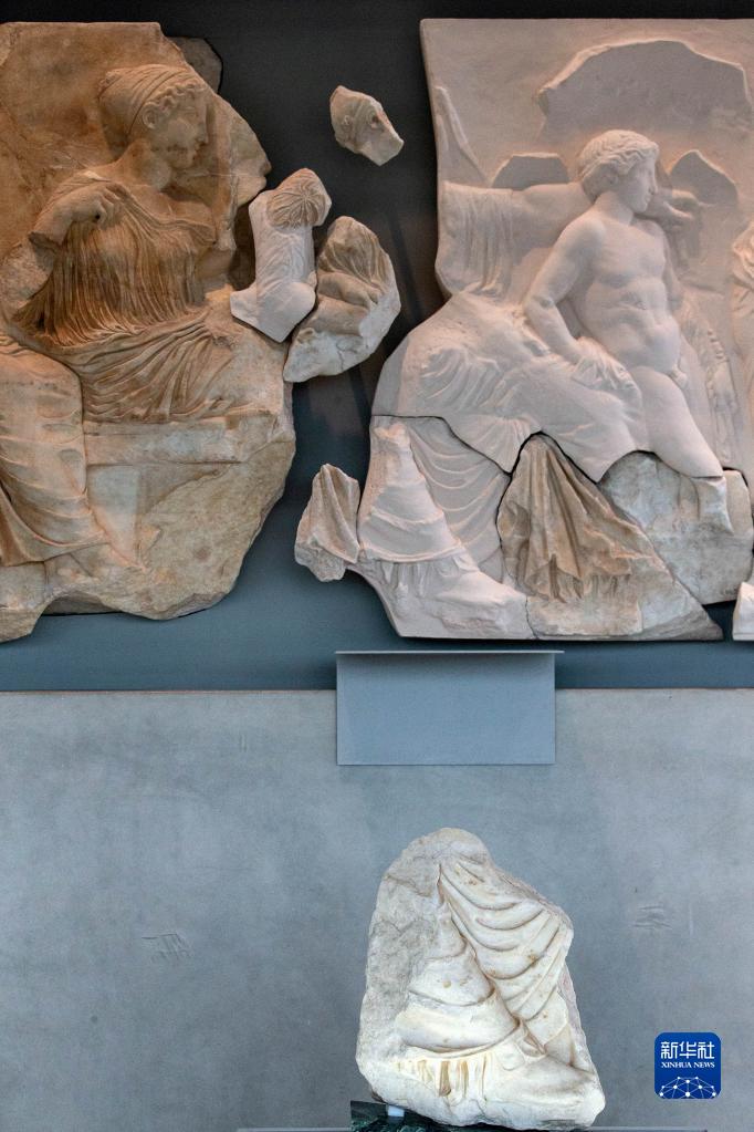 在意大利和希臘兩國博物館簽署長(cháng)期租借協(xié)議后,原保存在意大利一家博物館的一塊雅典衛城帕特農神廟石雕碎片10日在希臘雅典衛城博物館展出。