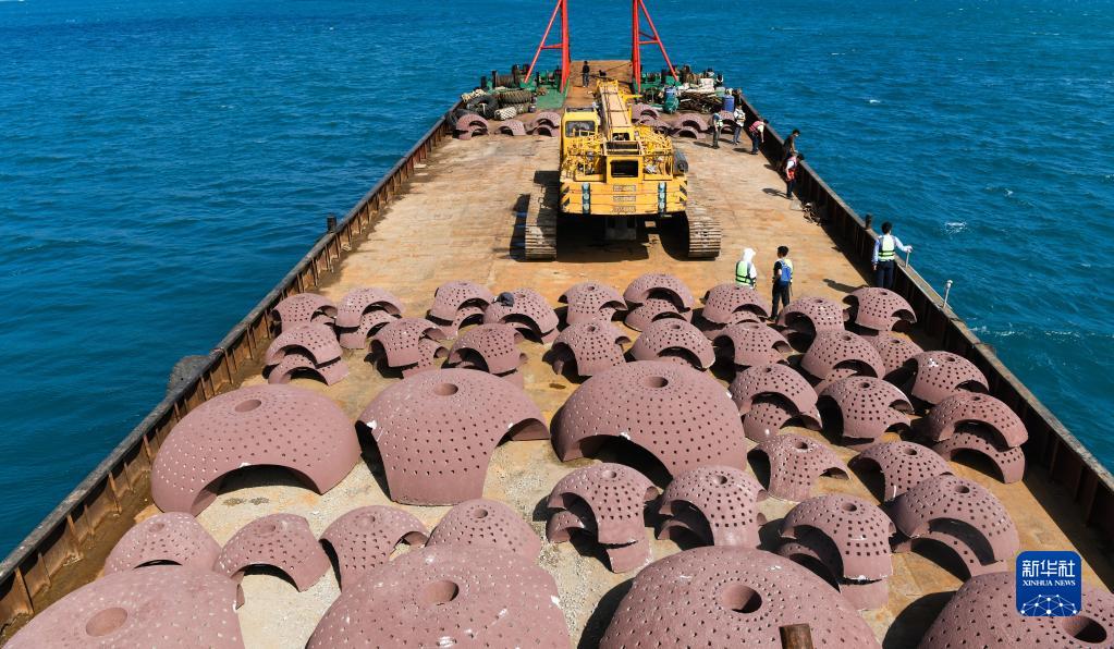 近日,在海南省三亞市亞龍灣相關(guān)海域,三亞珊瑚礁生態(tài)研究所聯(lián)合相關(guān)企業(yè),在該海域投放近80個(gè)人工生態(tài)礁,加速生態(tài)修復。
