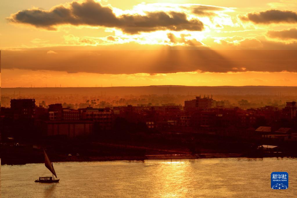 1月26日,一艘帆船行駛在埃及開(kāi)羅日落時(shí)分的尼羅河上。