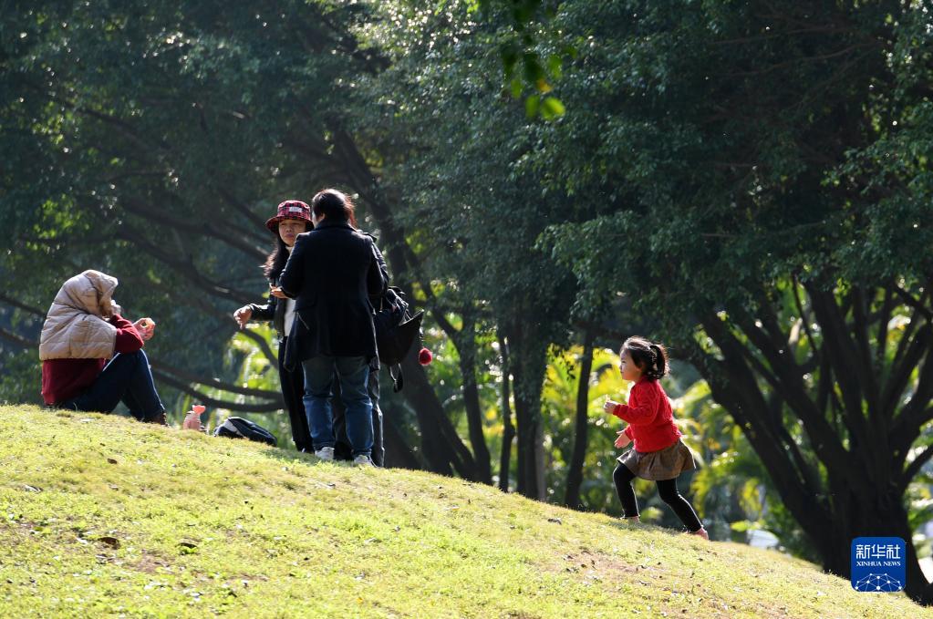 2月4日,市民在廣西南寧市南湖邊的綠地上休閑。