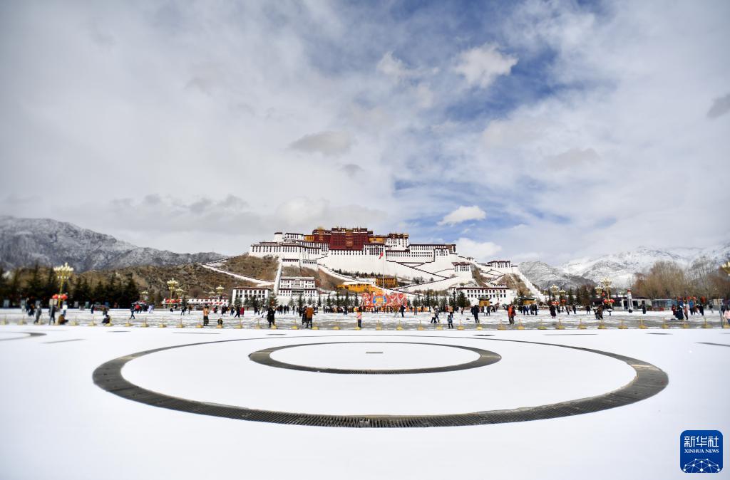 2月5日拍攝的雪后布達拉宮廣場(chǎng)。