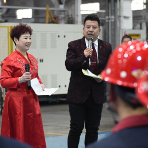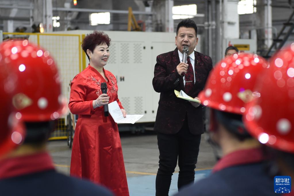 2月13日,在河北電機股份有限公司生產(chǎn)車(chē)間,石家莊市欒城區樓底農民工俱樂(lè )部成員在現場(chǎng)主持節目。