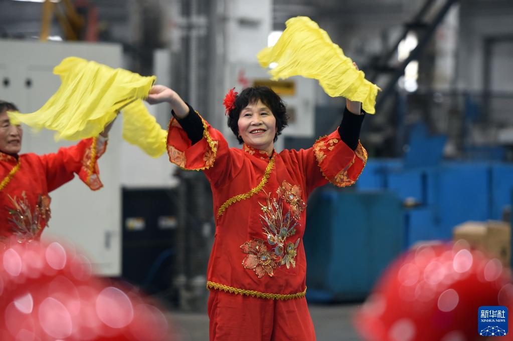 2月13日,在河北電機股份有限公司生產(chǎn)車(chē)間,石家莊市欒城區樓底農民工俱樂(lè )部成員在現場(chǎng)演出節目。