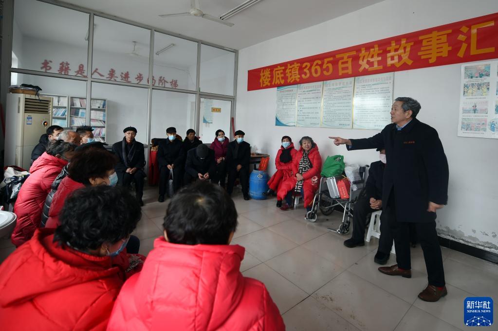 2月13日,在石家莊市欒城區樓底農民工俱樂(lè )部,李俊岐(右一)與俱樂(lè )部成員在總結當天演出經(jīng)驗教訓。