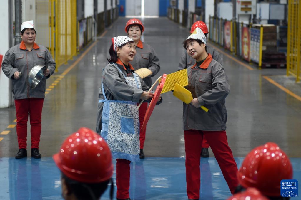 2月13日,在河北電機股份有限公司生產(chǎn)車(chē)間,石家莊市欒城區樓底農民工俱樂(lè )部成員在現場(chǎng)演出節目。